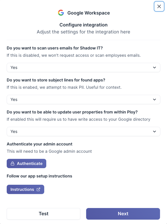 2. Configure your Google Workspace Integration