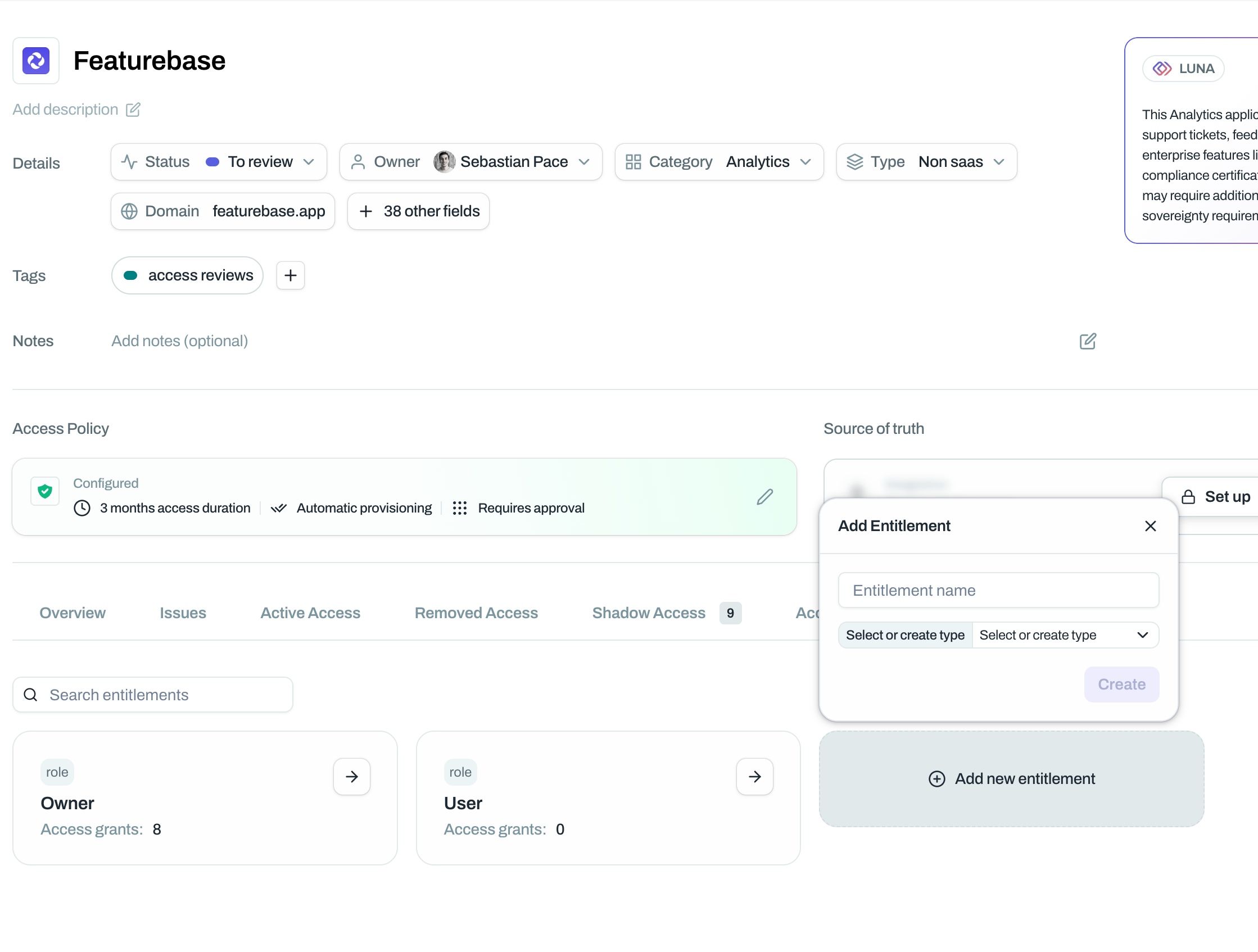4. Enter the entitlement name (e.g. "Admin", "Member", "Read-only")