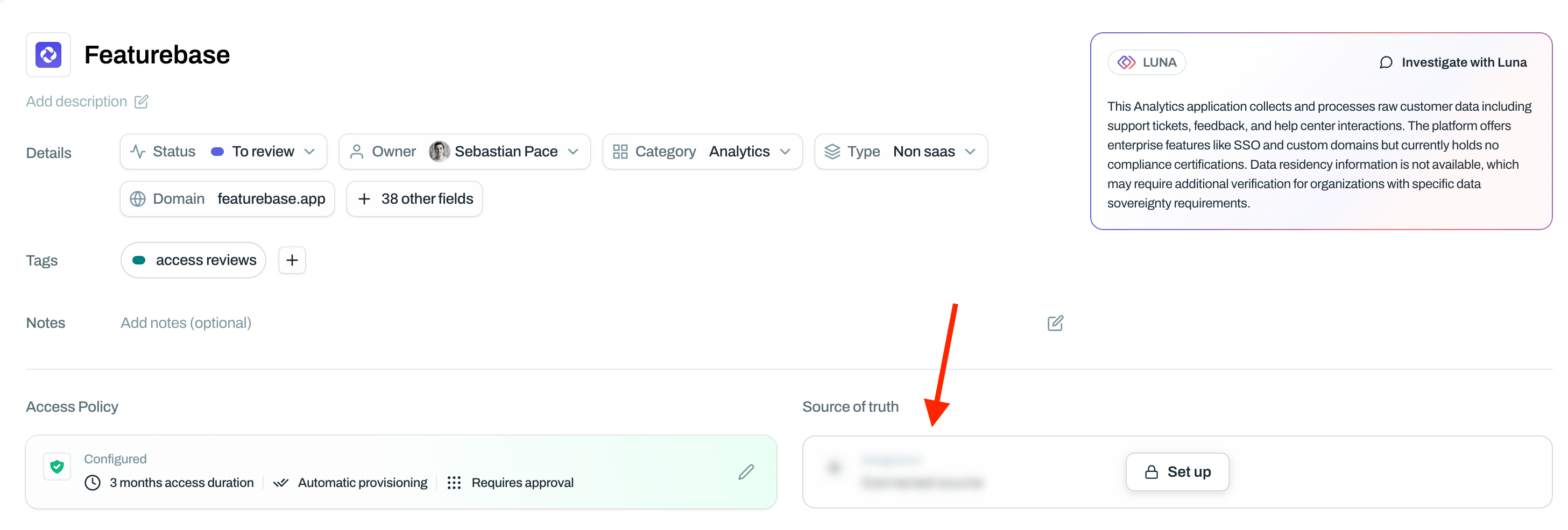 2. Click Set up in the Source of Truth section (or click the existing source to modify it)